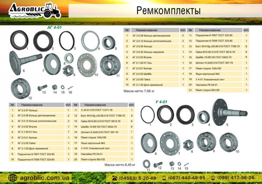 Ремкомплекты для дисковых борон АГ, АГД, ДАН, УДА
