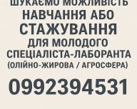 Шукаємо можливість навчання або стажування для молодого спеціаліста-лаборанта (олійно-жирова / агросфера)