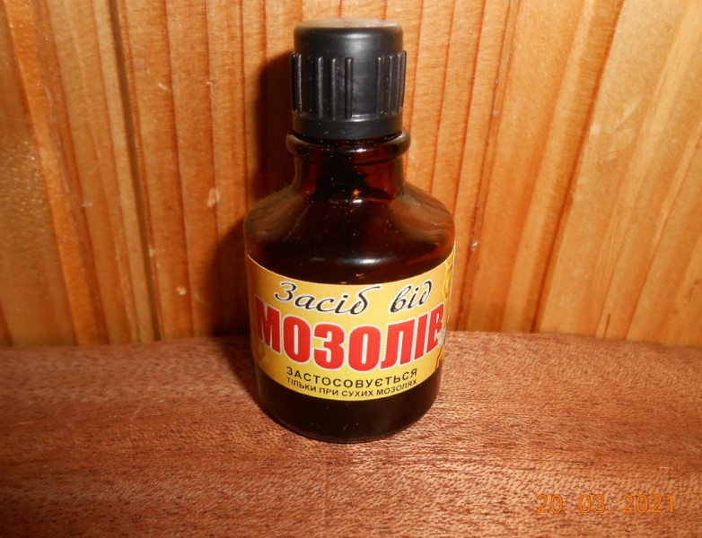 Склад: екстракт прополісу, екстракт чистотілу, вода дистильована. Спосіб застосування: наносити 7 днів по 3 краплі на день. Застосовується тільки при сухих мозолях. Ціна: 129 грн.