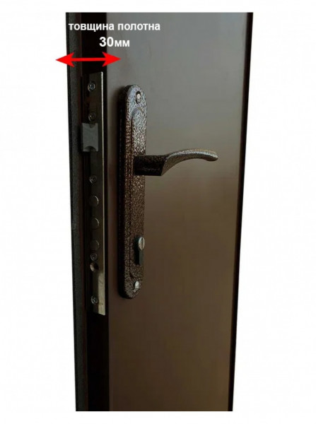 • Товщина дверного полотна: 30 мм, що забезпечує міцність та жорсткість
