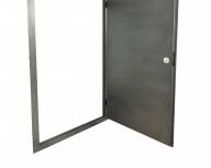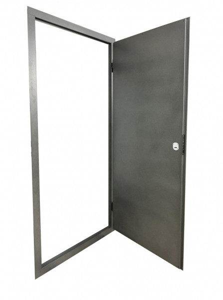 Міцна конструкція: Коробка дверей виготовлена з гнутої труби 50х30 мм з металевим листом товщиною 0.5 мм. Полотно виконане з металевого листа 0.4 мм з обох боків, а в місцях завальцовки товщина металу досягає 1.2-1.5 мм, що забезпечує підвищену жорсткість та зносостійкість. Товщина полотна становить 30 мм.