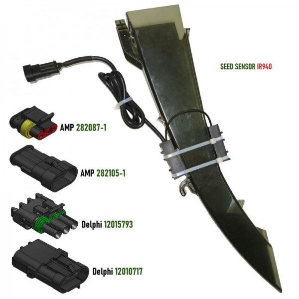 Використовуючи оптичну технологію, датчики насіння IR940 працюють за принципом фотодетекції. Інфро-червоні світлодіоди (LED) створюють тонке світлове поле по всій внутрішній частині насіннєвої трубки. Фотоприймач на протилежному боці трубки безперервно контролює інтенсивність світла, будь-яке насіння, яке порушує джерело світла, виявляється осередком фотодетектора, і відповідний імпульс передається на монітор. Постачається з 3 інфрочервоними світлодіодами для забезпечення точної швидкості сівби.