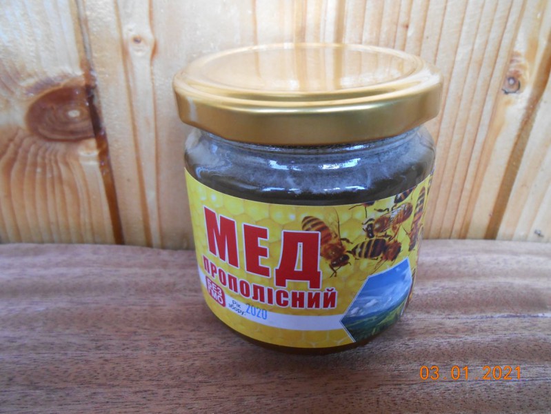 Склад: мед, прополіс. Показання: захворювання верхніх дихальних шляхів (кашель, ангіна, грип, гайморит), захворювання ротової порожнини (стоматит, запалення ясен), шлунково-кишкові захворювання (в т.ч. виразка шлунку і 12-палої кишки), імунодефіцит. Спосіб застосування: 0,5 ч. л. два рази в день за 30 хв. до їди (можна розчинити в 1 стакані теплого молока).